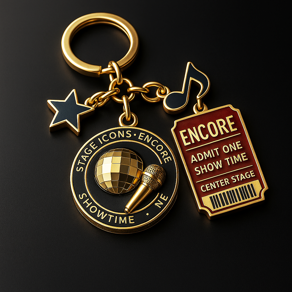 🎤🎟️As stage lights flash through the night and cheers echo in your ears, this multi-pendant keychain, featuring a combination of a mirror ball and a microphone as the main pendant, complemented by star shapes, musical notes, and "ENCORE" ticket stubs, carefully captures the still burning heart after each curtain call in your palm.